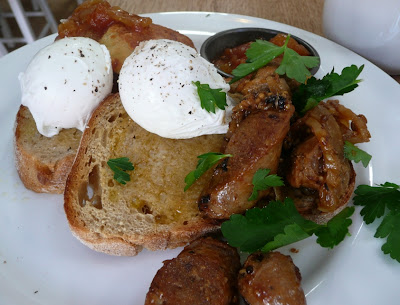 The Boy ordered the Poached eggs on Toast and Freek Range Pork & Fennel sausage braise as well (uncanny how those two have so much in common… it’s the TT syndrome)… but with House made potato gems and House relish $2.50