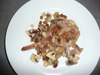 Chop the apples (3 of them, cos they were really small), Half a red onion, a little grated ginger, and button mushrooms (I used 4)