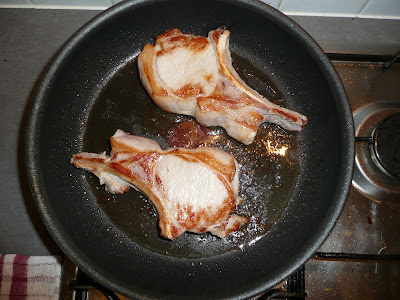 First up, you want to brown the pork chops on both sides. Not on an overly large fire, as you don’t want to overcook the pork loin chops.