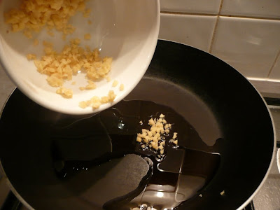 Heat up 2-3 tablespoons of oil and toss in some roughly chopped ginger