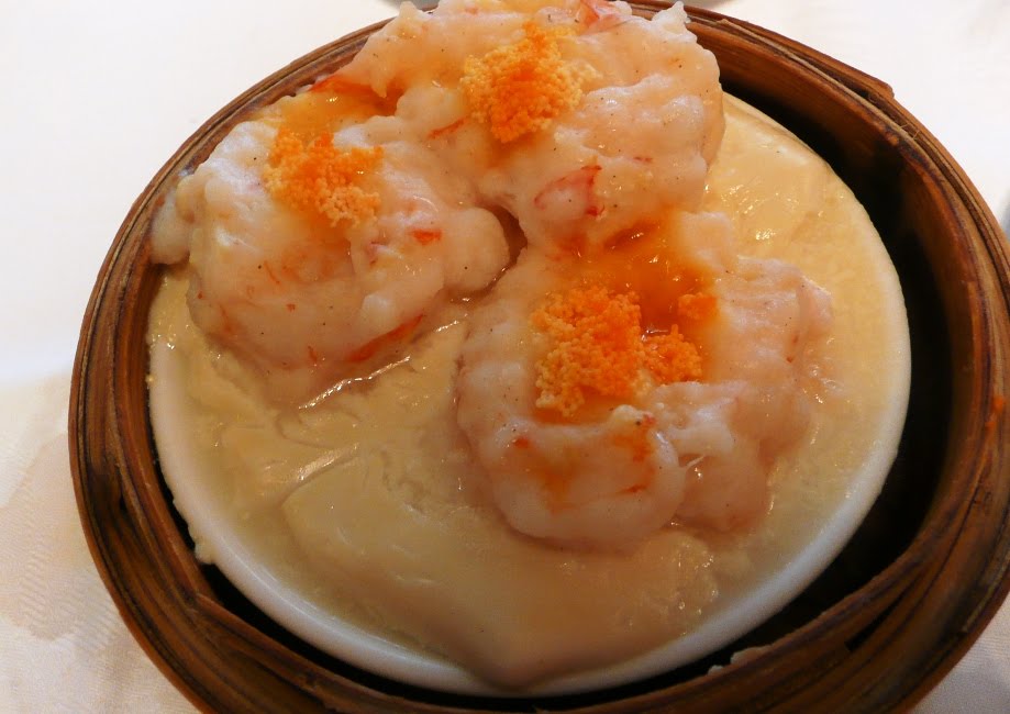 This was steamed prawns (if they’re not steamed, their fried, alright?!), fish roe and silken tofu (very very tasty)