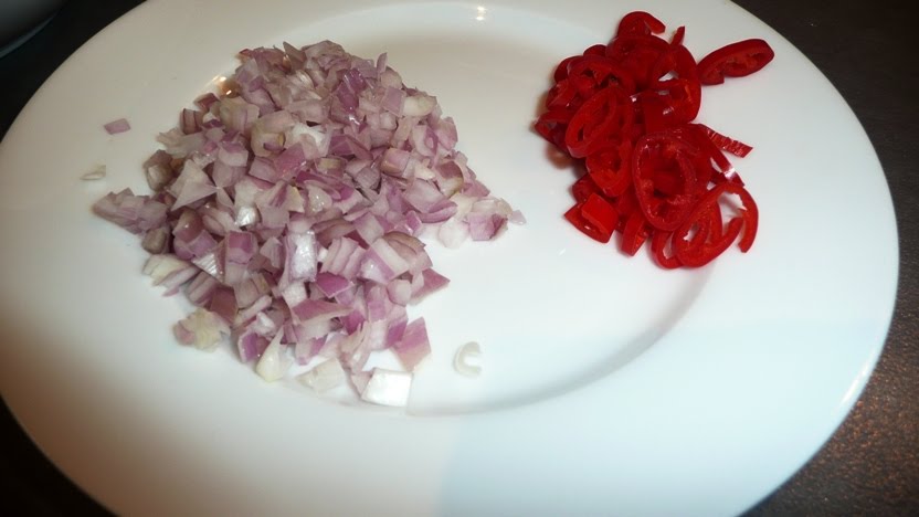Shred the omelette (obviously the Boy has not got Martin Boertz’s skills), but my slicing of the hard boiled egg is perfecto!)