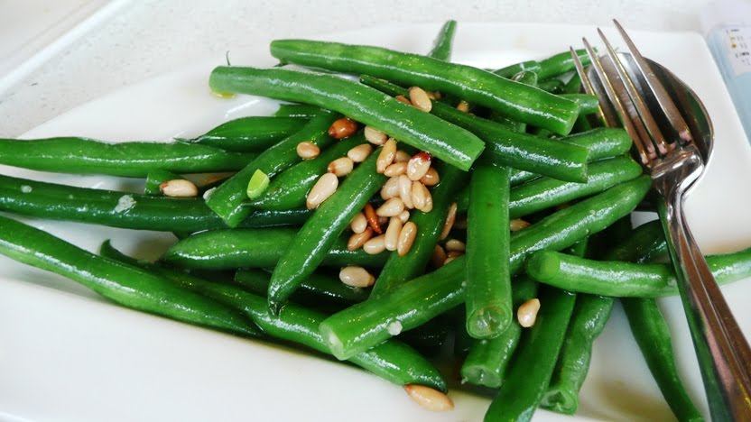 The right dish! Green beans with roasted pine nuts and lemon pressed olive oil $10