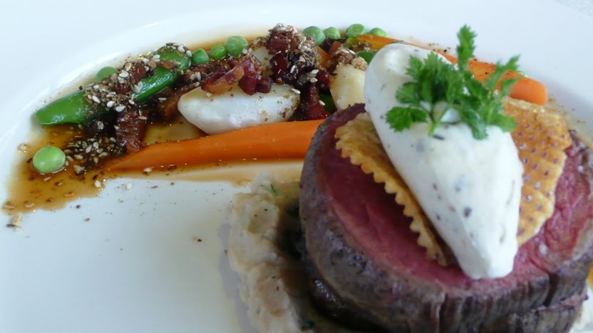 The Boy and Z had a Black Angus eye fillet with truffled creme fraiche, dukkah vegetables, cannellini skordalia and pancetta lardons $36