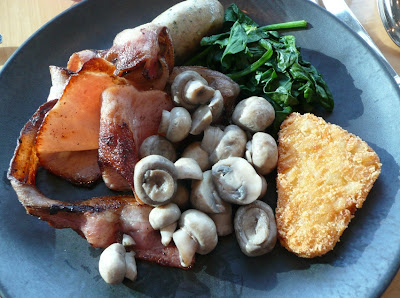 Anyways, back to my own greedy morning breakfast… I went with the usual bacon (minus eggs), mushrooms, sausages, spinach and hash brown..