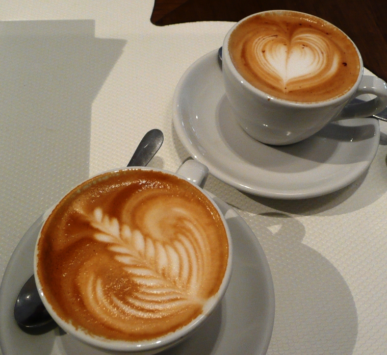 To start (I still had sleep in my eyes), I decided on a Latte, and the Boy decided on a Mocha… these were quite good..