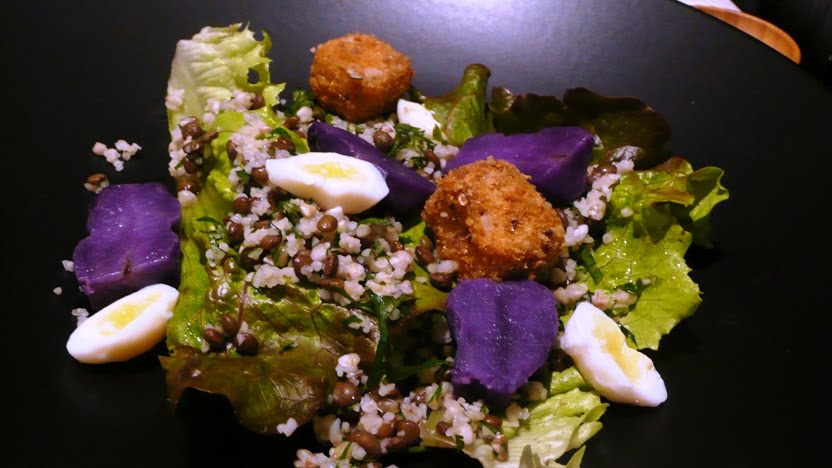 Salad of Mr Donati’s Crumbed Pork, Purple Congos at Embrasse, Carlton |